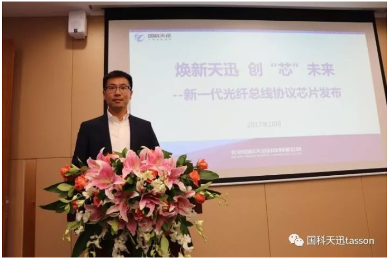 国科珠海阳光智能停车管理有限公司市场部经理徐俊亭为大家讲解并发布国内高可靠光纤通信领域的首款总线协议芯片产品。